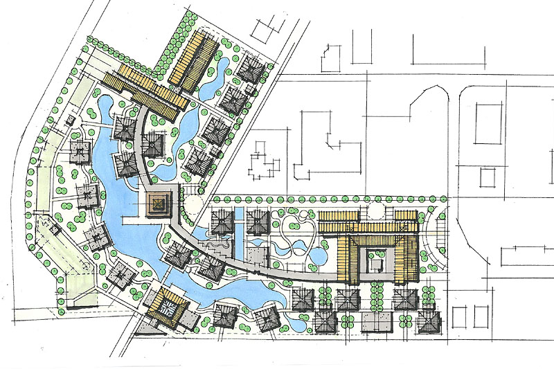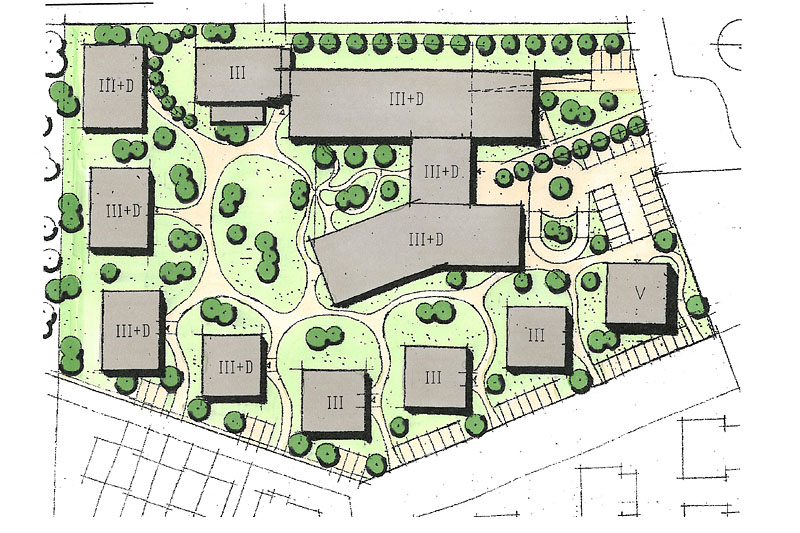 Kurzinfo: Dorfrandlage: Siedlungskonzept, lockere Bebauung, Pflegeheim, Betreutes Wohnen, Zusatzangebote, Wellness, Café, Mehrgenerationenhaus, eigene Infrastruktur, verkehrberuhigt, Freianlagenplanung mit großen Wasserflächen.