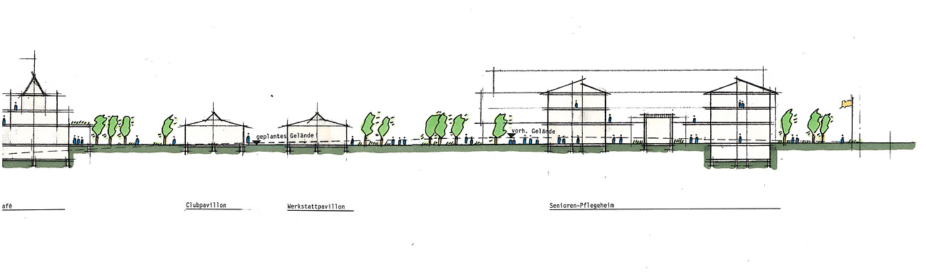 Kurzinfo: Altenpflegeheim mit Demenzstation (124 Betten), betreutes Wohnen (116 WE), Teilabriss Bestand leichtes Hanggrundstück;